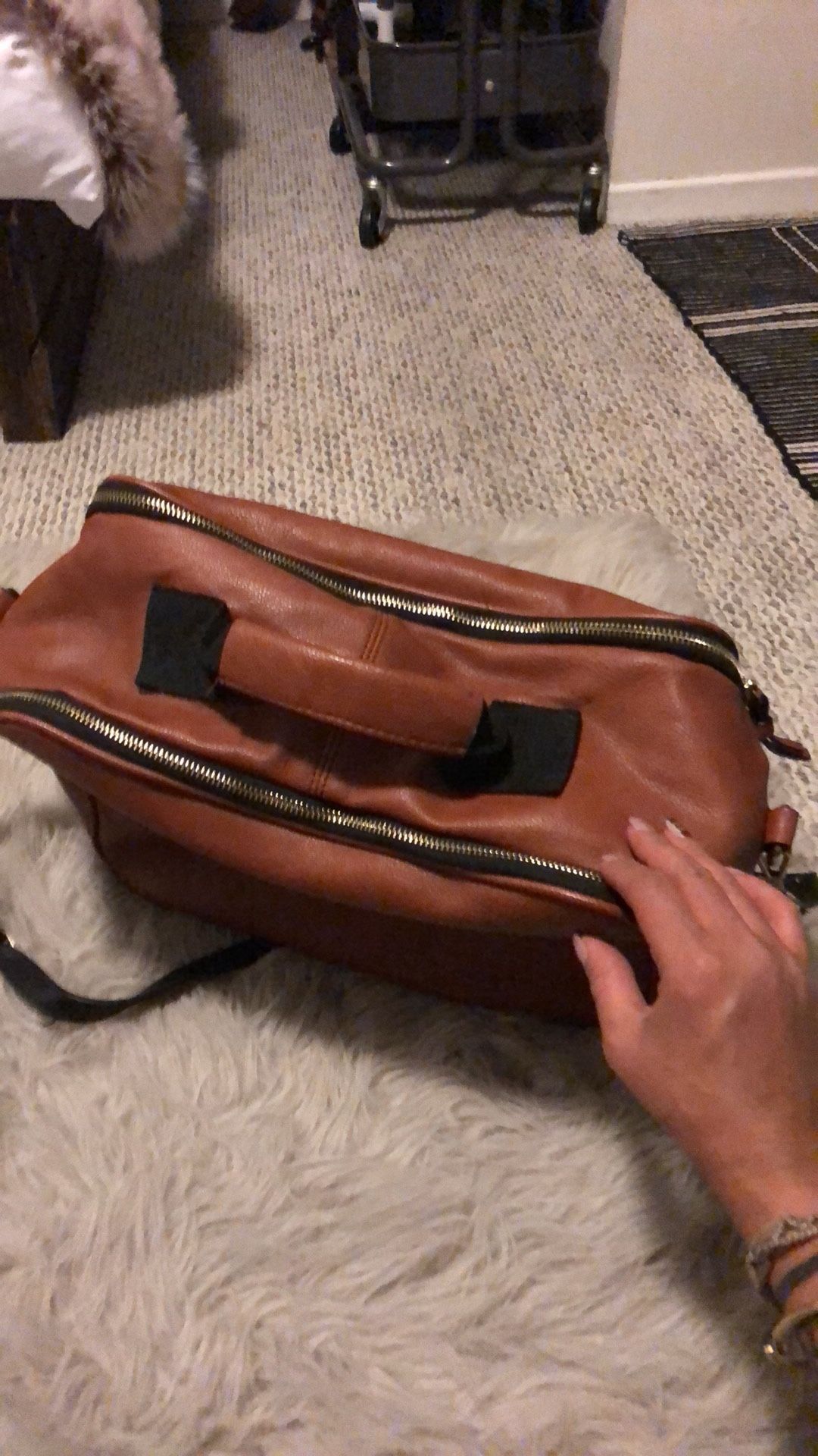 Brown double zipper faux leather bag from Zara