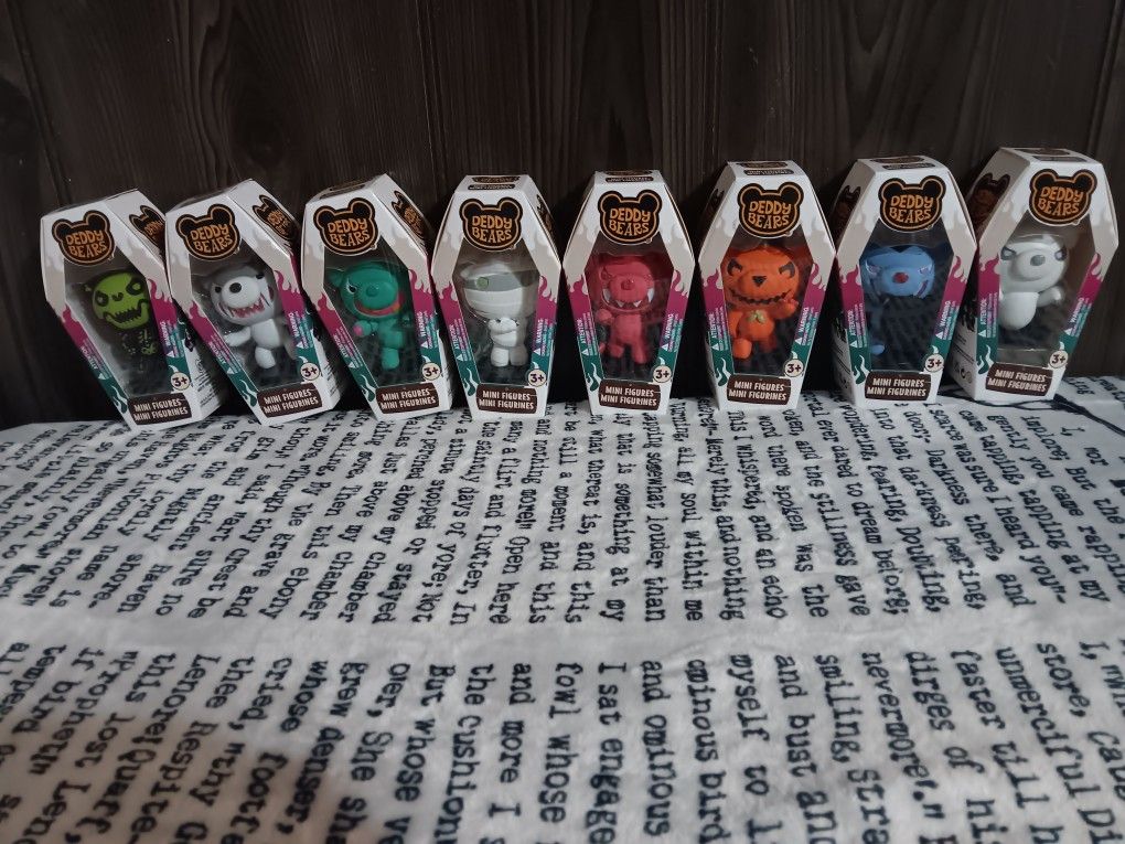 $100 for all eight the complete set I have the full complete set with box of the miniature deddy bears. I have all eight all are brand new still in your little coffin cases comes with big box will not sell separate selling all together selling all of them for $100. Must be able to pick up in Albuquerque Northeast heights by Louisiana and Central area. This item is as is as indicated in the pictures this items on a first come first serve basis cannot hold cannot save must pick up in Albuquerque