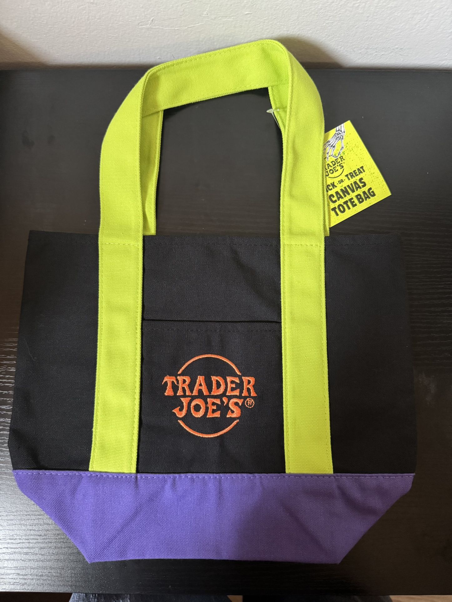 Trader Joe’s Mini Halloween Tote 65% Cotton 35% Polyester 13 inches long, 11 inches tall, 6 inches wide Brand New x2, $10 each Pick Up