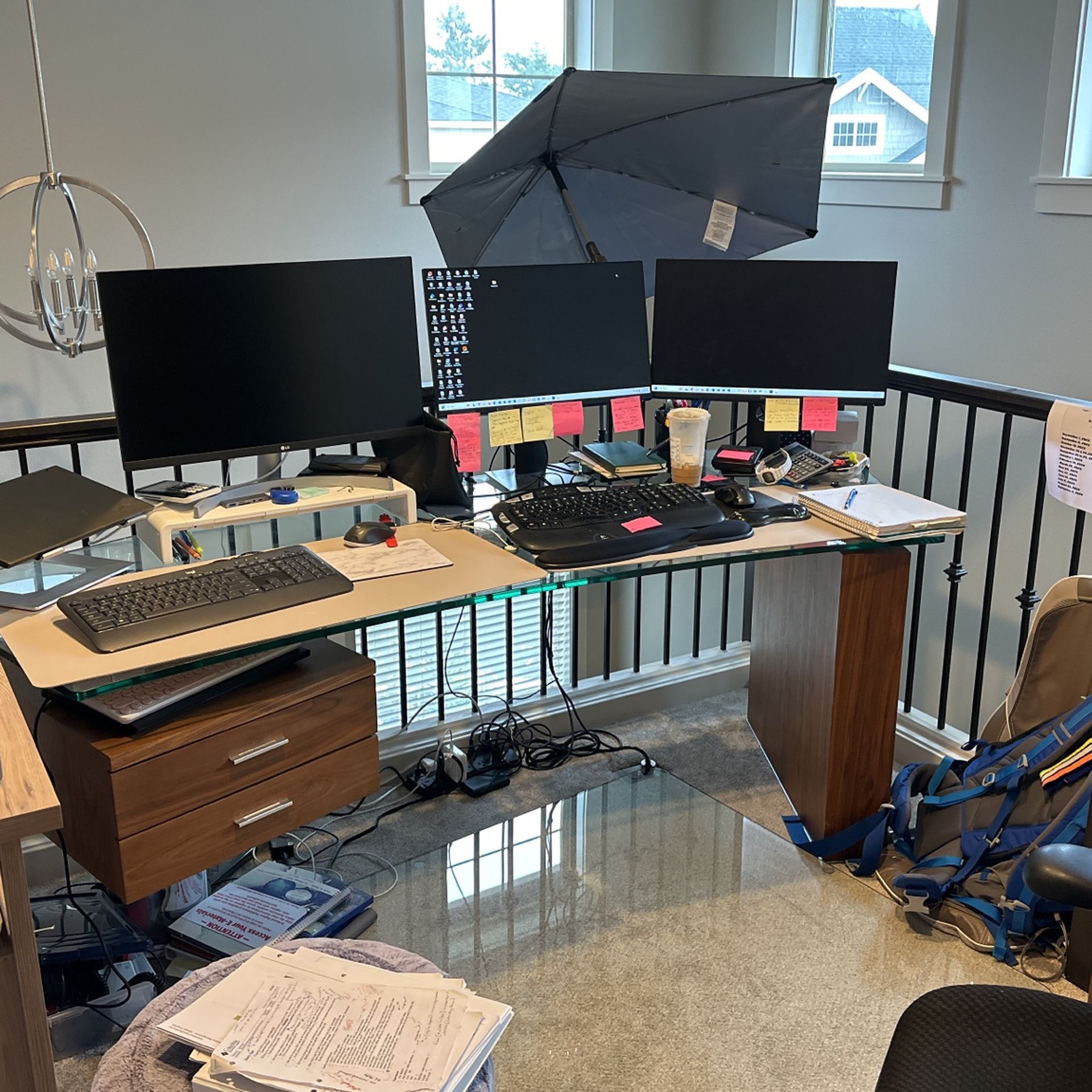 Bought this desk at Dania a few years ago for $1400. Minor scratch on the leg stand due to the fact that my chair was hitting it