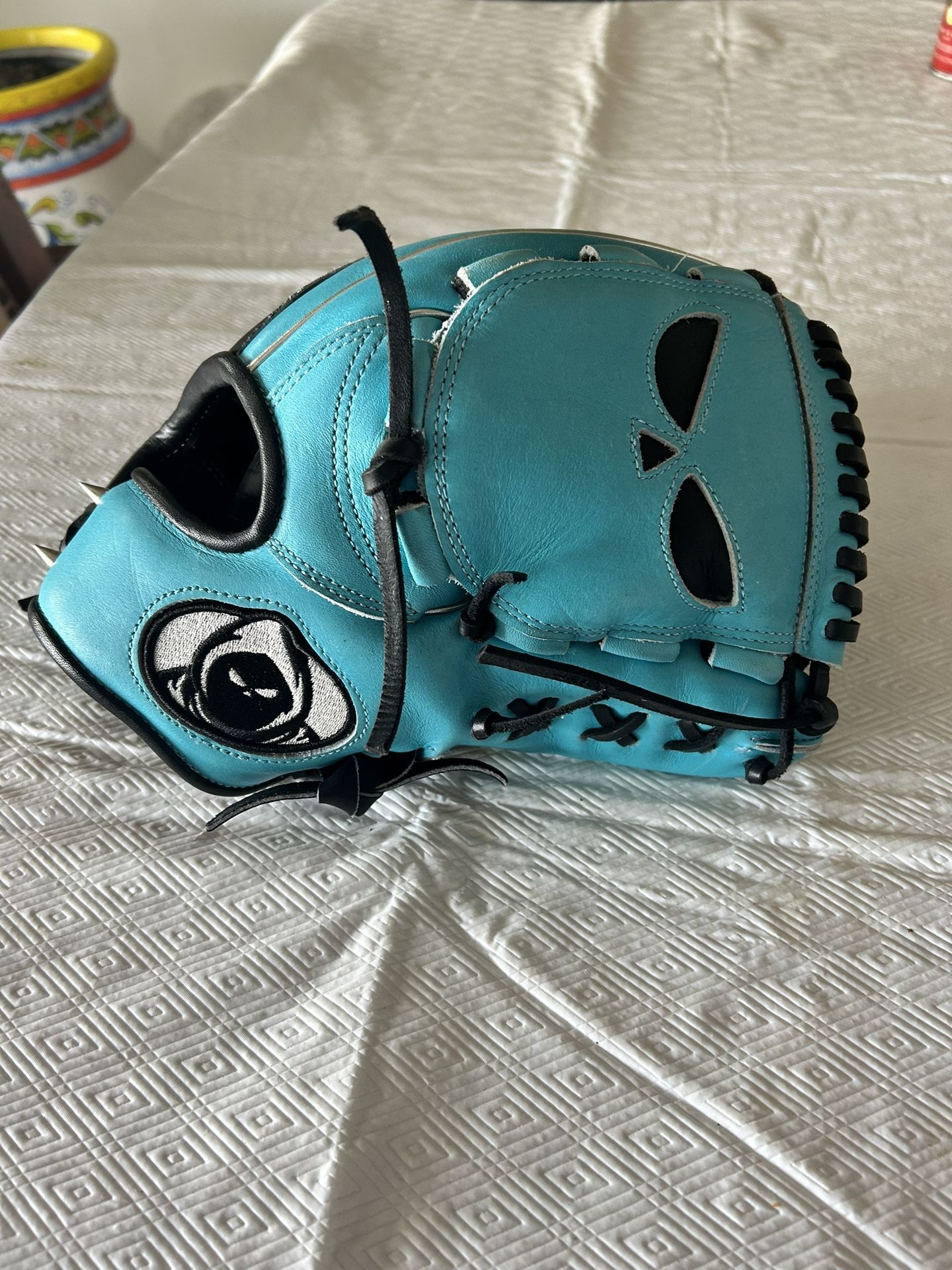Demon Shadow Baseball Glove 12in glove, teal blue with cool demon eyes design. Has metal spikes on wrist, but can be taken off with just your finger. A fun cool glove!