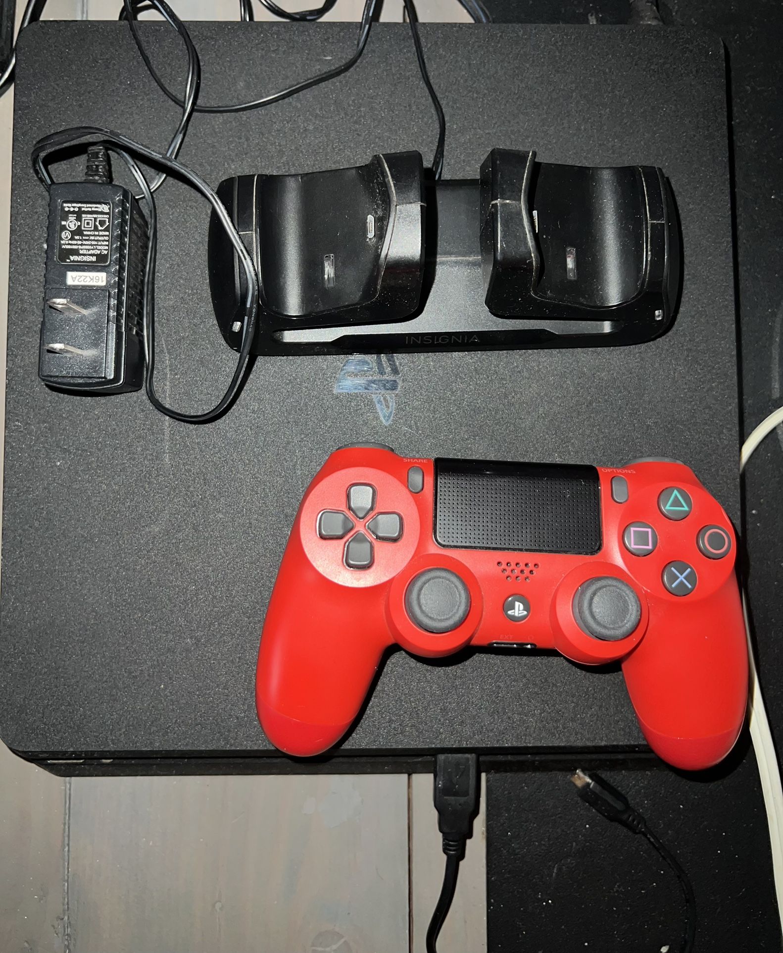 PS4 500gb comes with red controller, dual charging station and 11+ games