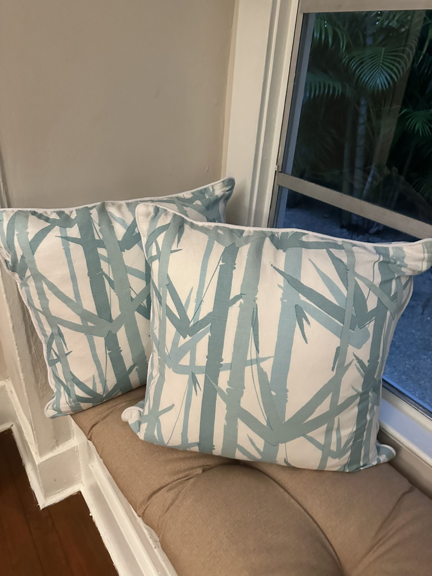 Pair Of 22” Pillows Custom Upholstered, Quality Fabric
