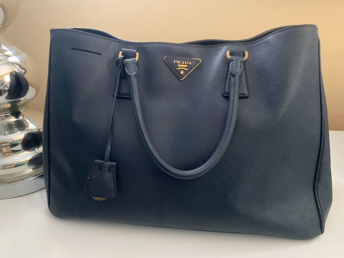PRADA Large Saffiano Lux $5200 Navy Handbag W Authenticity Card & Dust bag