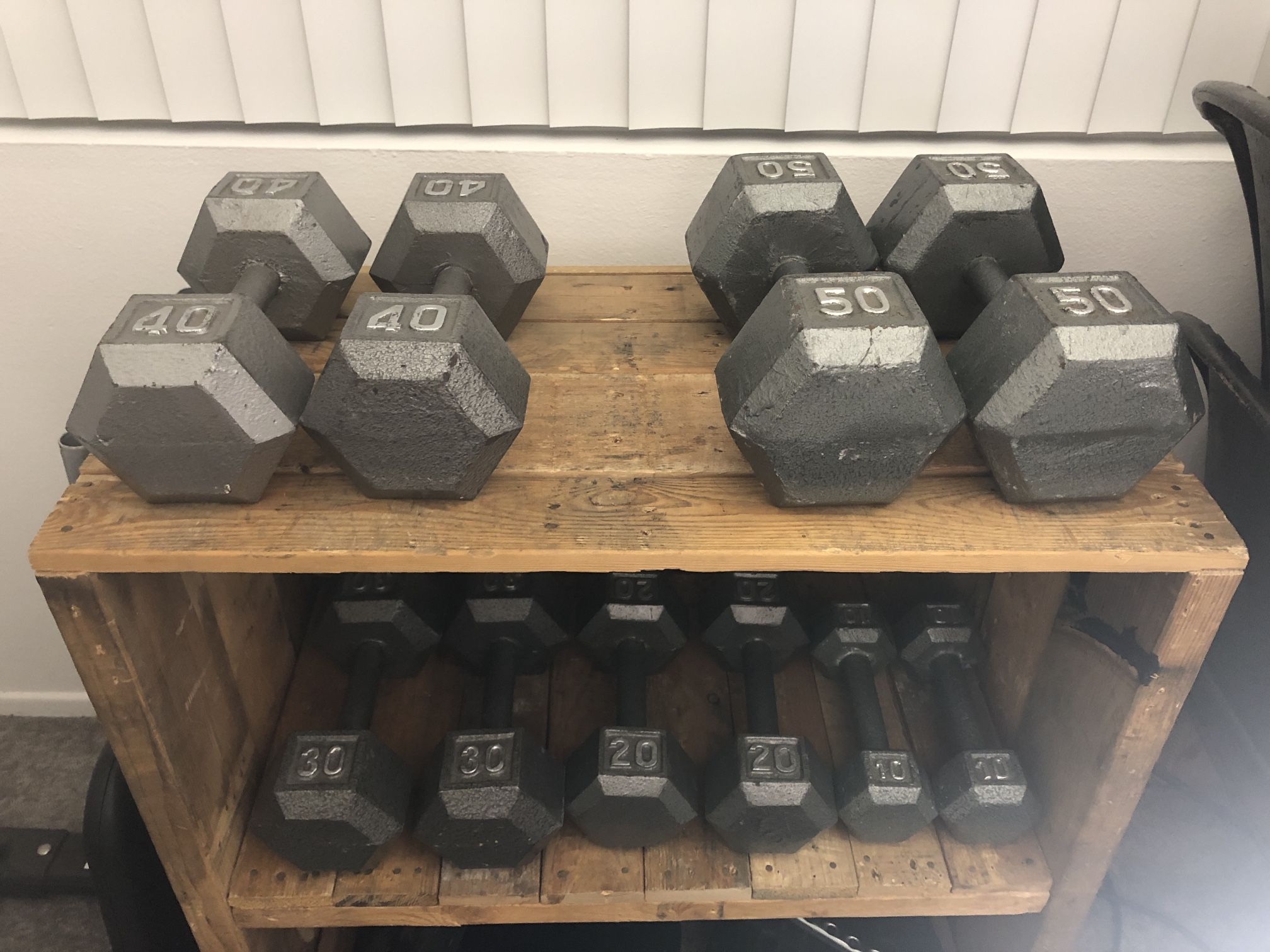 Price can be negotiable for serious buyers. Selling ALL TOGETHER. Great for a gym with multiple people at the same time and tons of range for beginners to heavy lifters. Comes with the shelf I made from an old pallet, too, if you’d like it. Gym workout fitness train work health