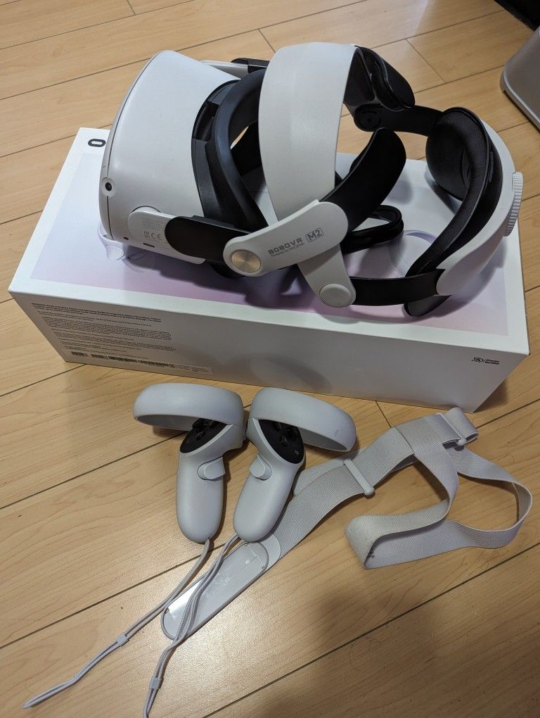 Used Meta/oculus quest 2 VR headset 128gb Only used a handful of times and it's in great condition! Comes with better headband bought separately and original headband The right controller was replaced with a new one because the old one fell in water These are now discontinued Lmk if you have any questions!