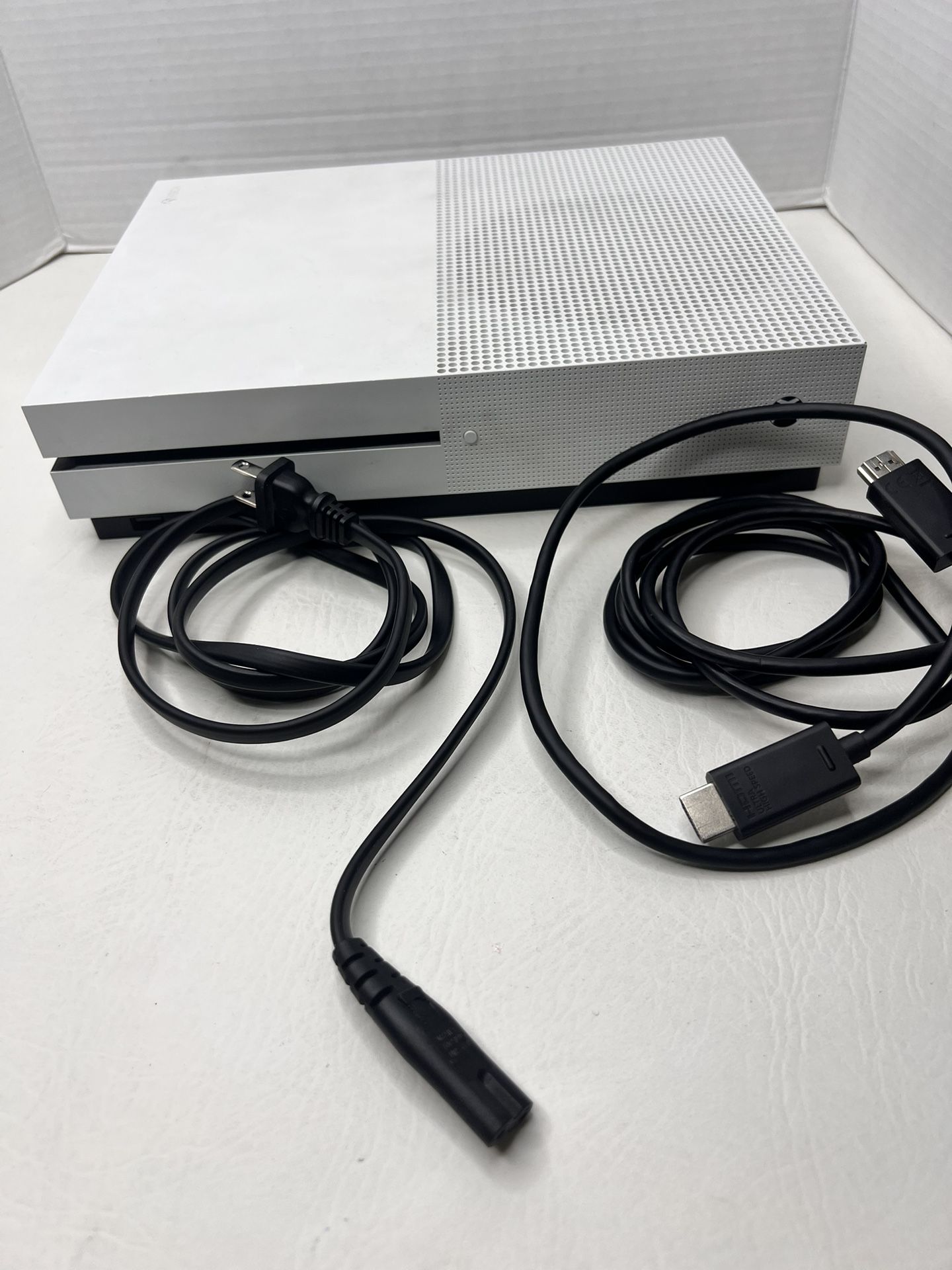 Preowned but excellent . Works well Comes with the cords , No Remote controls . 1 terabyte hard drive Xbox one S Purchased for 3 times this amount .
