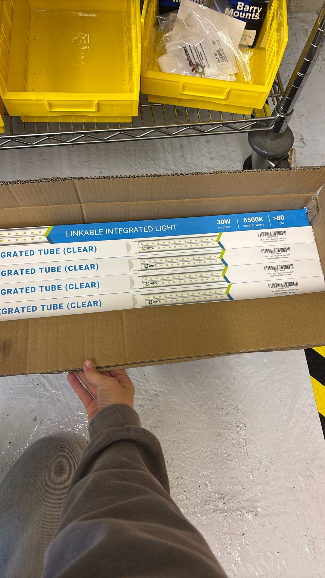 4ft LED Shop Light Fixture, 30W V Shape 6500K 3900LM Clear Cover, AC100-277V, ETL Listed, Plug and Play, Damp Location, High Output T8 Integrated LED Tube, Linkable LED Shop Lights for Garage, Workshop, Basement - Qty 15 Bought for $15.99 each, selling for $10 each! Because we waited too long to return. They are still in the box!