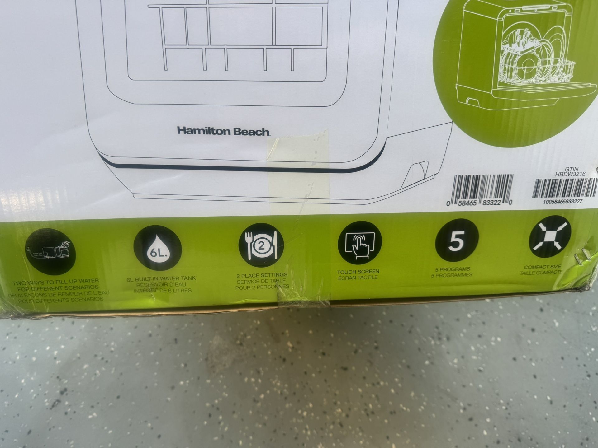 Hamilton Beach countertop dishwasher in brand-new condition. Box was opened but the unit has never been used. Includes all accessories, manual, and original packaging. Perfect for apartments, RVs, or small kitchens.