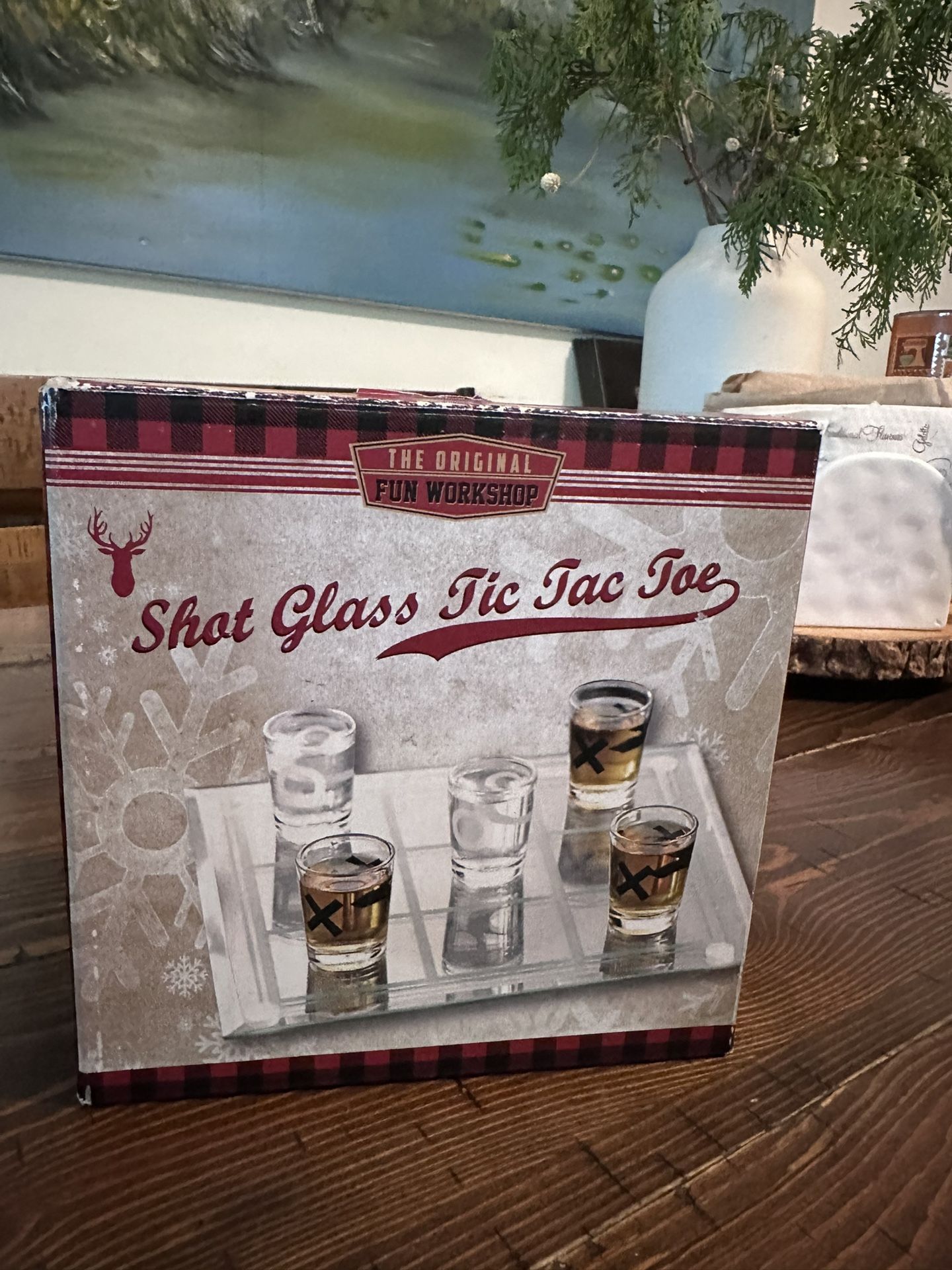 Shot Glass Tic Tac Toe Game – Glass Board & 9 Shot Glasses – Party / Bar Game