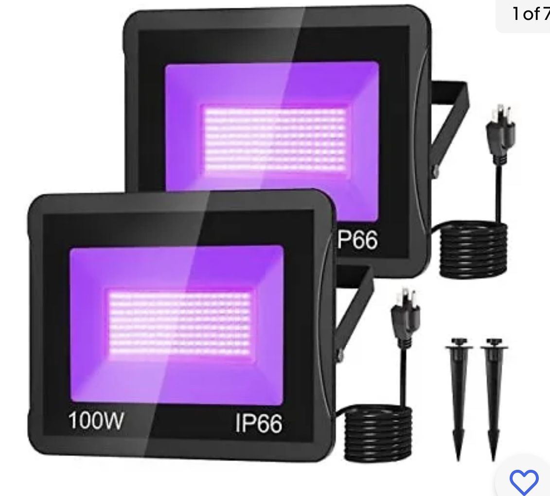 CREPOW 100W Black Lights 2 Pack LED Flood Light with Plug IP66 Waterproof Bla...