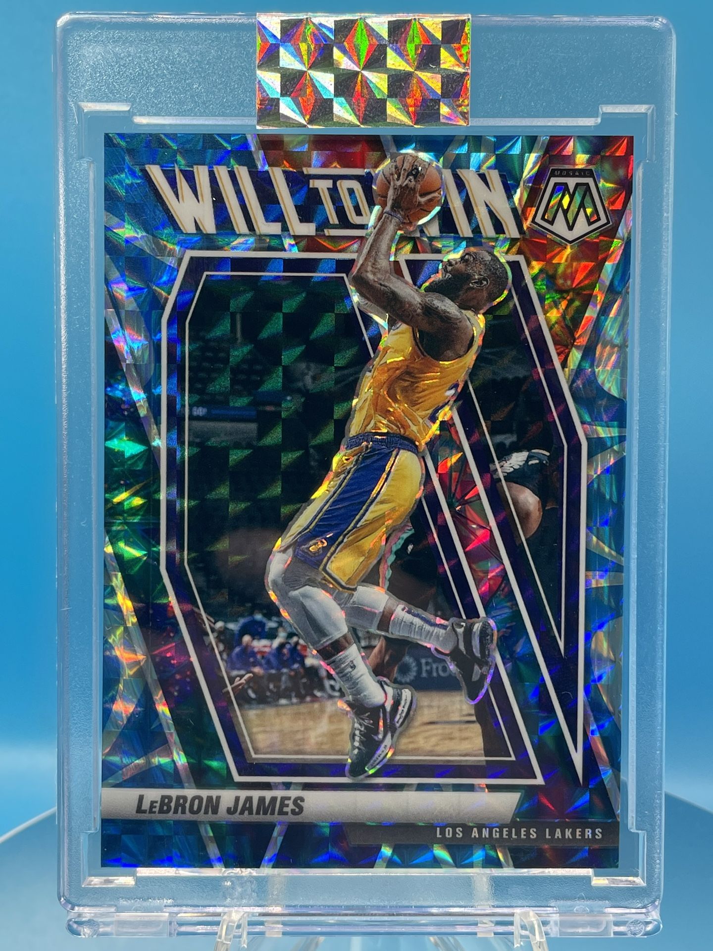 LeBron James 2020-21 Panini Mosaic Blue Prizm Will To Win /99 Lakers Lebron James, Lakers, NBA, Luka Doncic, Mosaic, Topps,