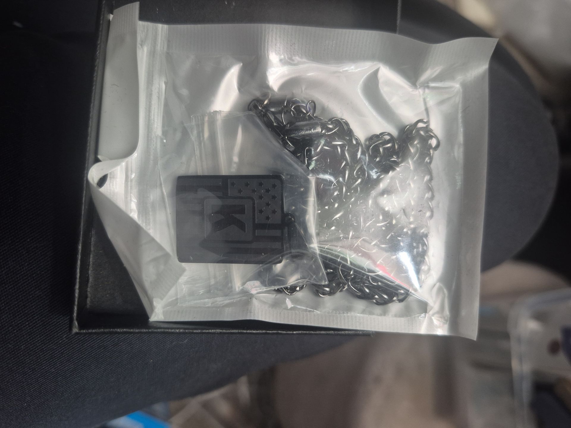 This is new with a flag in the background and a k on it