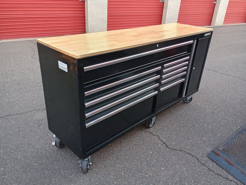 Standard Duty 72 in. W x 20 in. D 10-Drawer Gloss Black Mobile Workbench Cabinet with Solid Wood Top Never been used 32st and Washington
