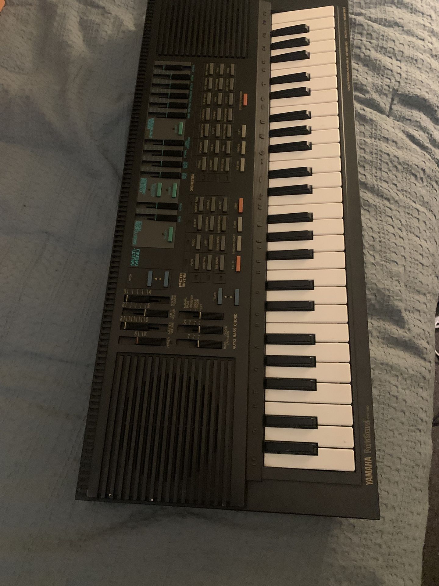 Yamaha keyboard vintage but still work The volume button wiggles a little but still works Comes with the charger 40$$