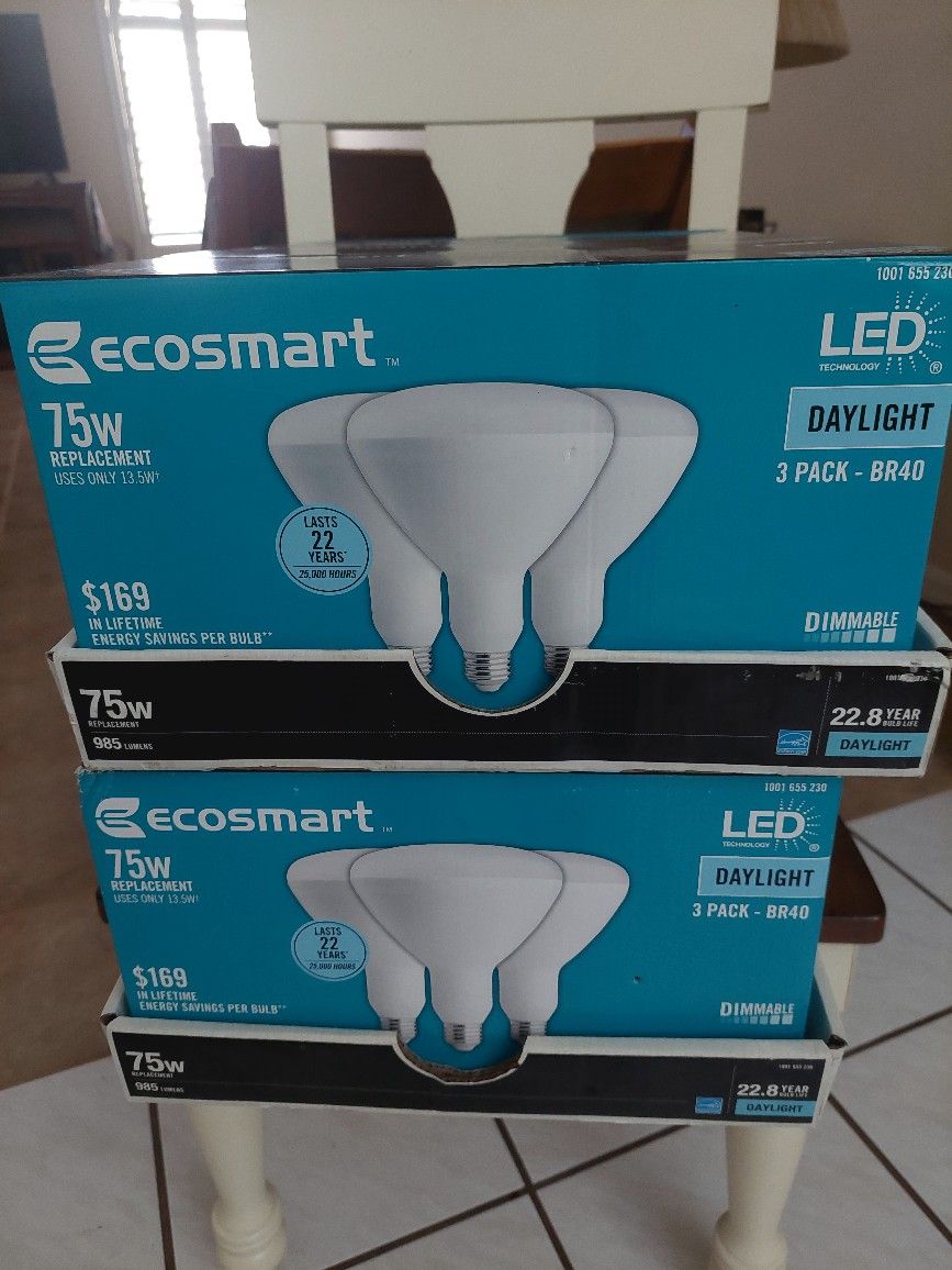 8 Boxes of LED Bulbs (NEW) 75 W LED DayLight. Dimmable. $10.00 for a box of 3. Total to sell #8.