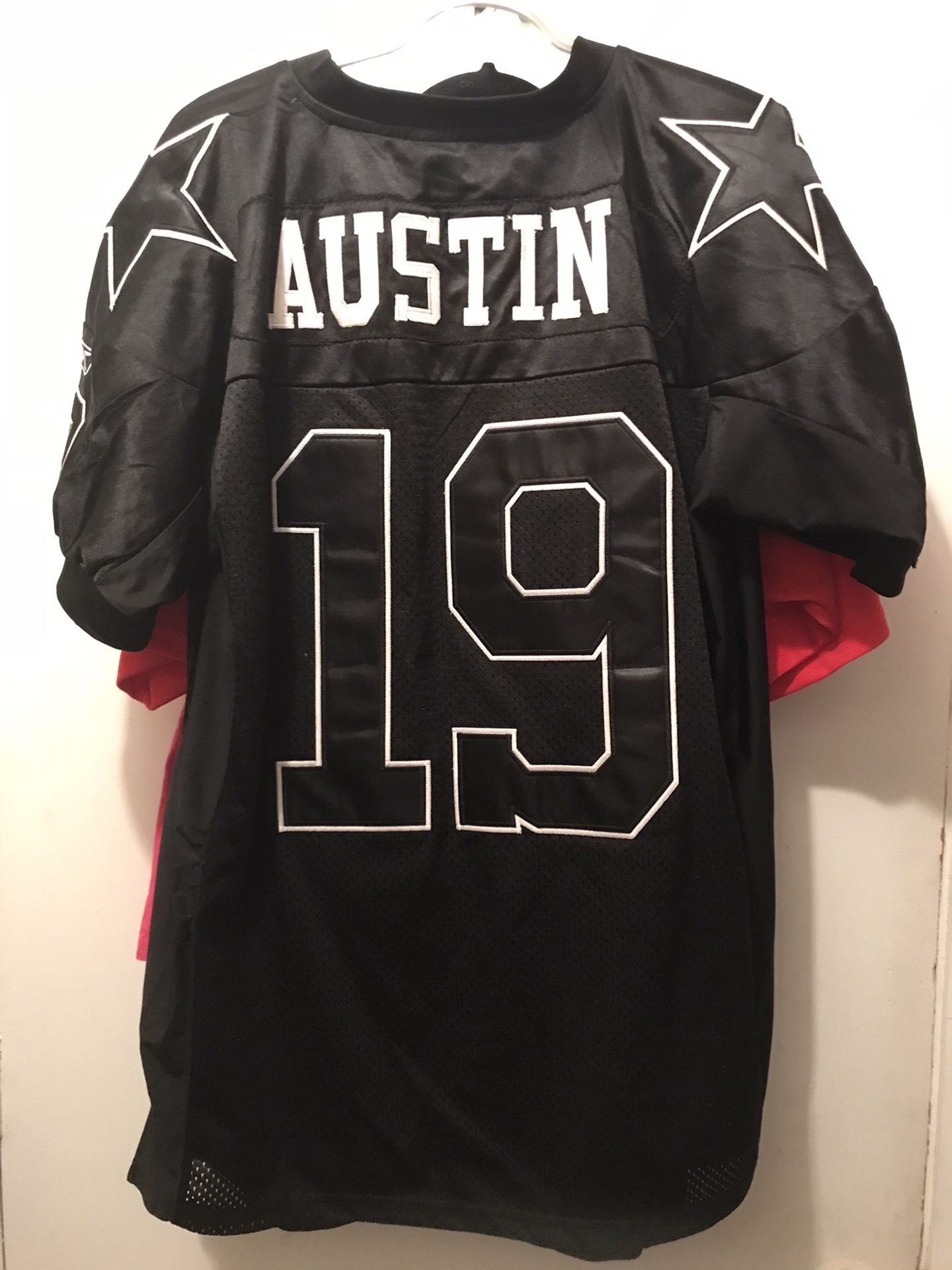 Sz 54 Manning NY, Sz 50 R. Johnson Bengals, Sz 52 Peterson Vikings, Sz 48 Carter Mets, Sz 44 Roethlisberger Steelers, Sz 48 Austin Cowboys ⭐️ Sz youth XL (16) Texans, women’s small Diggs Vikings, Sz 56 Eric Dickerson throwback, Sz 48 #8 Longhorns, Sz 48 Durant Thunder, Sz 52 Malkin #71 East (Hockey) Sz 50 Irvin #47 Hurricanes