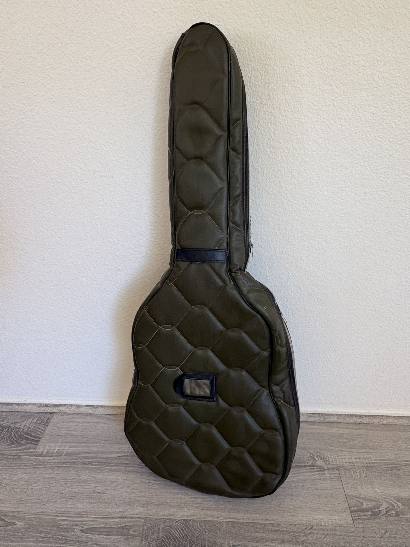 Really nice condition South American made soft guitar case / gig bag. Made for classical or similar sized guitars, but I currently keep a Stratocaster in it. Probably will fit most electrics. The material is vinyl or maybe a leather, I am not sure, but it is durable and cleans very easily. The zippers and padding are still in great shape. Overall excellent shape considering it is I think from the 70s.