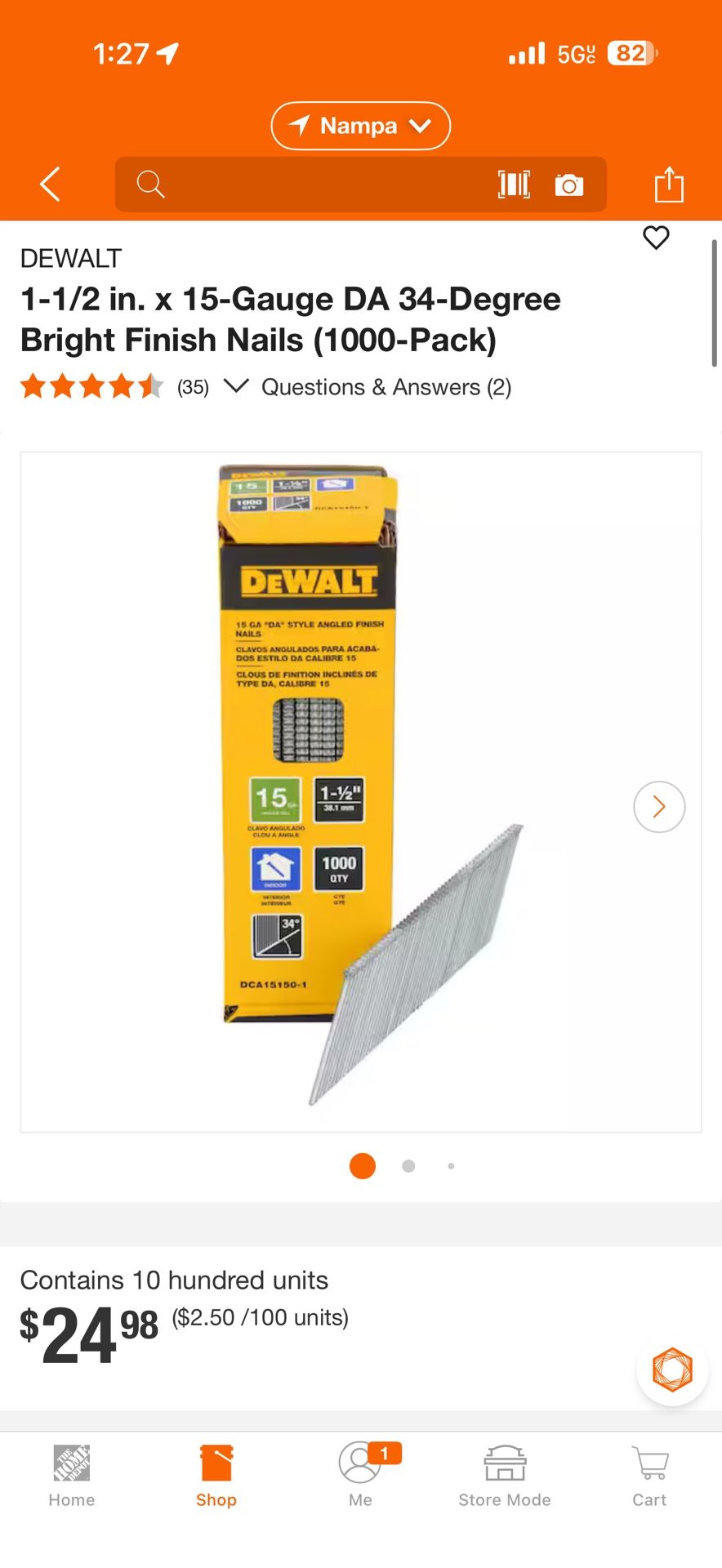 1-1/2 in. x 15-Gauge DA 34-Degree Bright Finish Nails (1000-Pack)