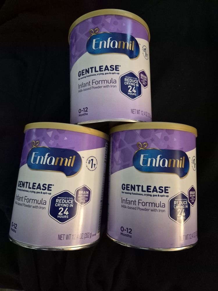 3 new sealed baby formulas Enfamil gentlease 12.4 Oz cans All 3 for $35 or $12 each 1 can expire Oct 27 2 can expire June 27