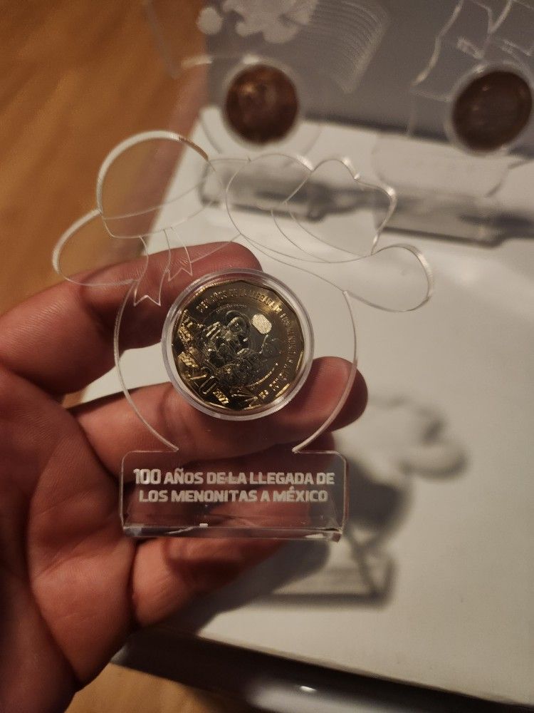 Acrílico con moneda de 20 pesos decagonales local pickup only. $20 cada uno