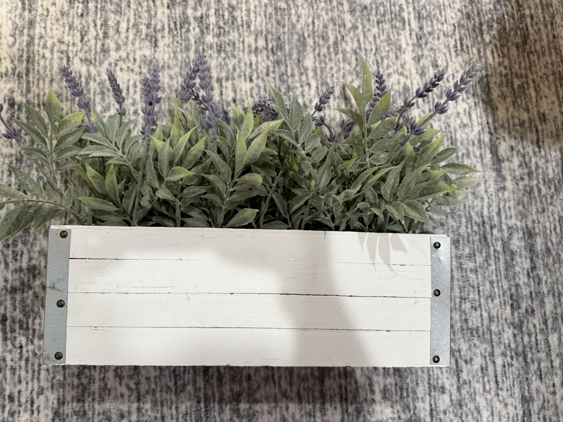 I have very cute like real lavender plant in wooden pot with some accent if silver corners. It’s very cute o had lots of compliments but it’s time to change my style. Comes from smoke free home. No smells
