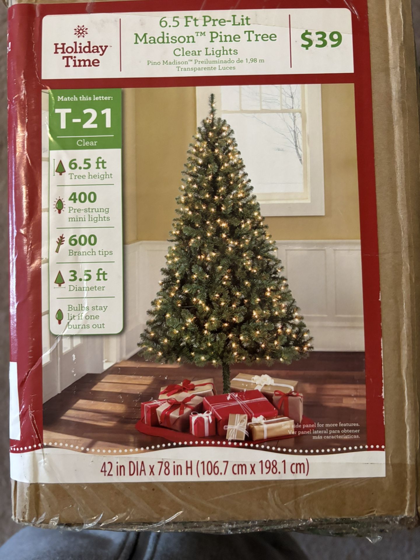 Giving this Christmas Tree to anyone interested. The lights stopped working so mi wife took them off and just put on separate lights on. It is in great condition and it comes in the box.