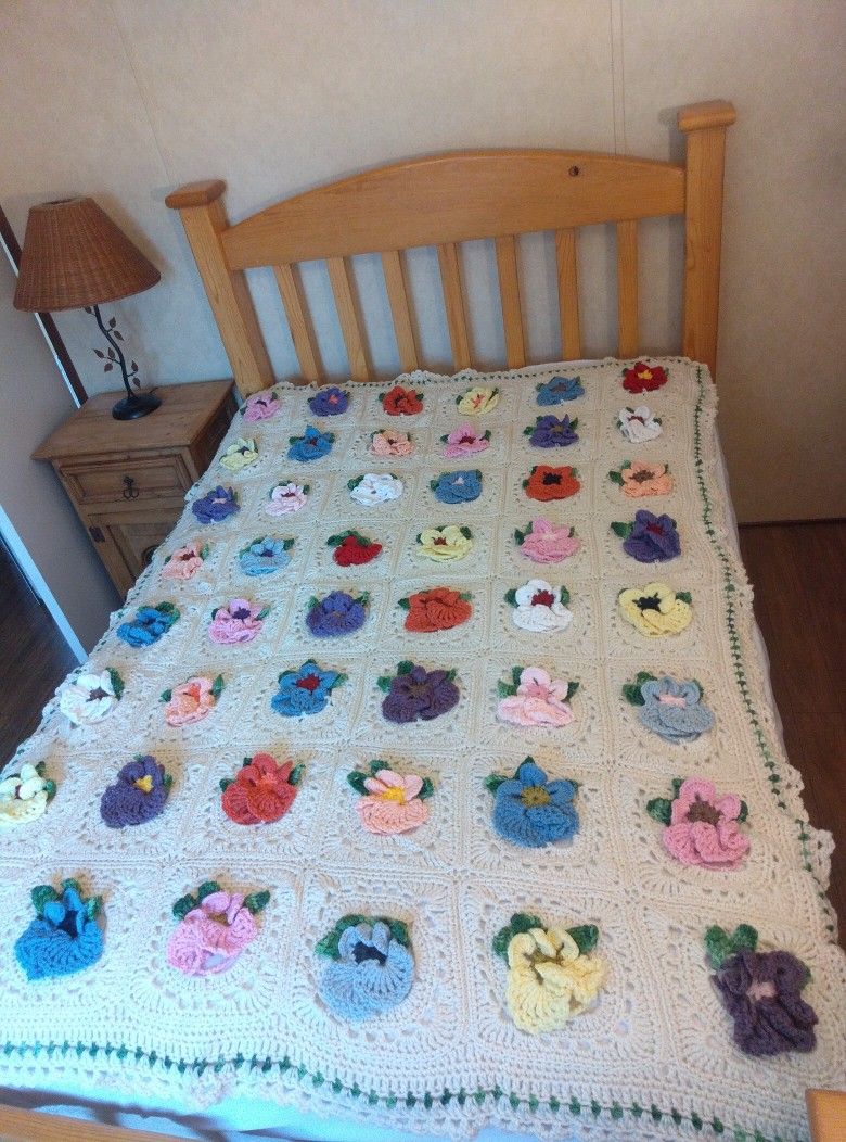 Hand made crochet blanket (Flower) Size: 57" x 78"