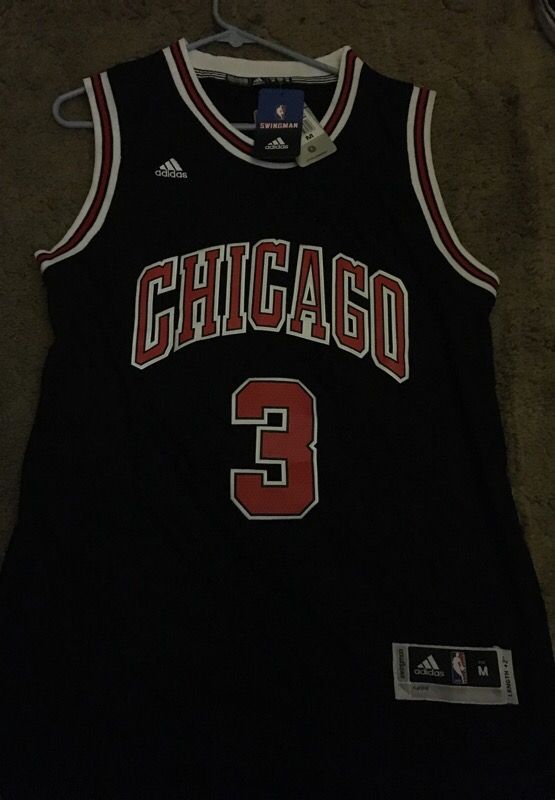 New Adidas Swingman D Wade Black Bulls Jersey (Size M)