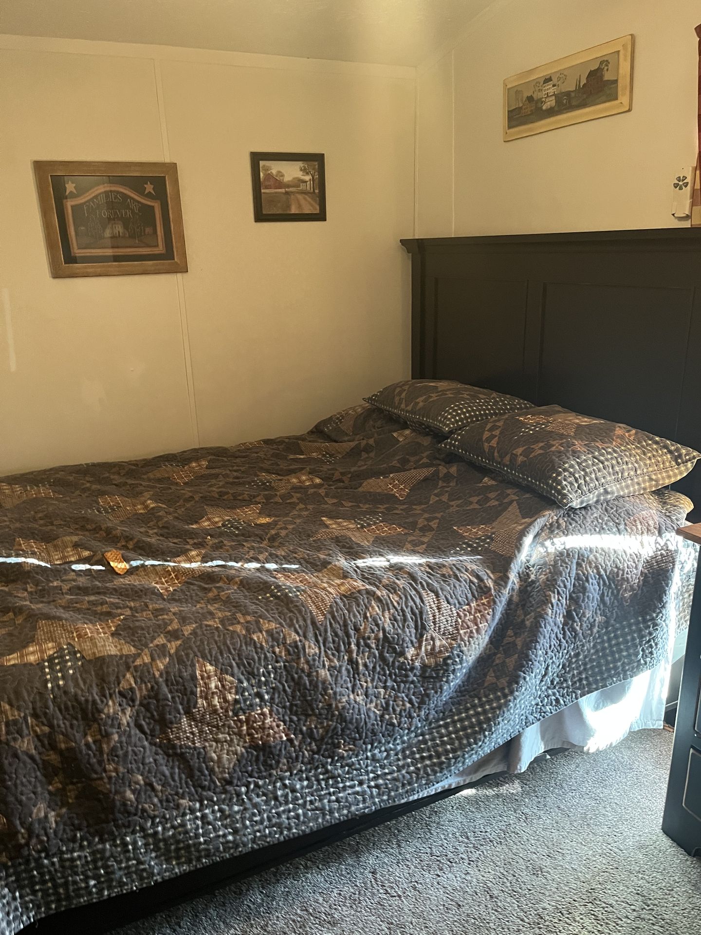 Brand, new primitive queen, size, bed mattress, and dresser all new