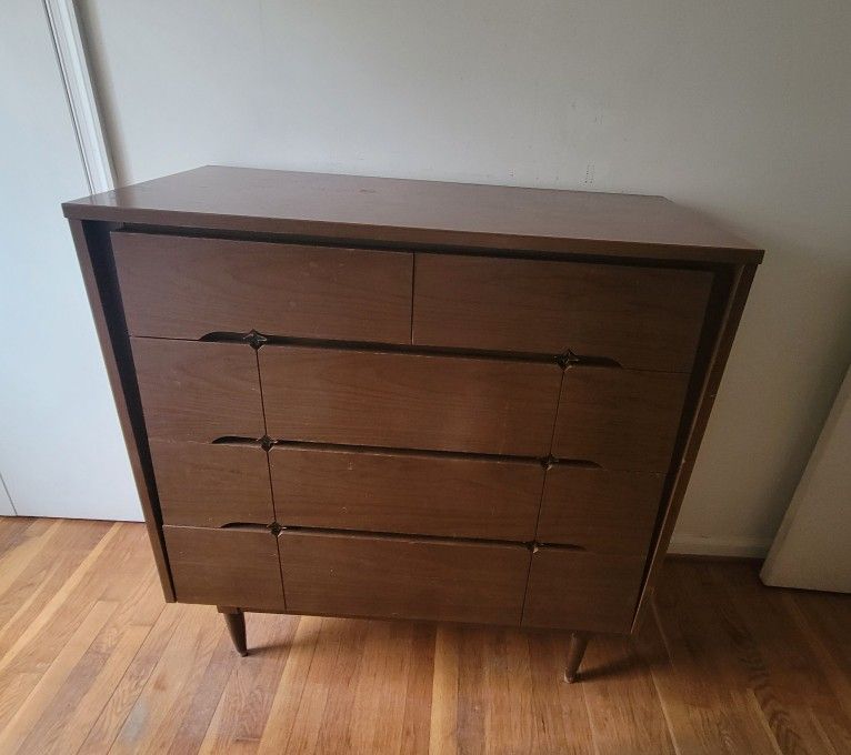 Yes it's available Cash only, pick up in Fort Washington MD 20744 Mid-century Modern walnut highboy dresser by Kroehler 38" long x 18" wide x 41" high Four (4) drawers Scratches on top & some wear on left side & 2 legs Beautiful retro piece for lovers of true vintage design!