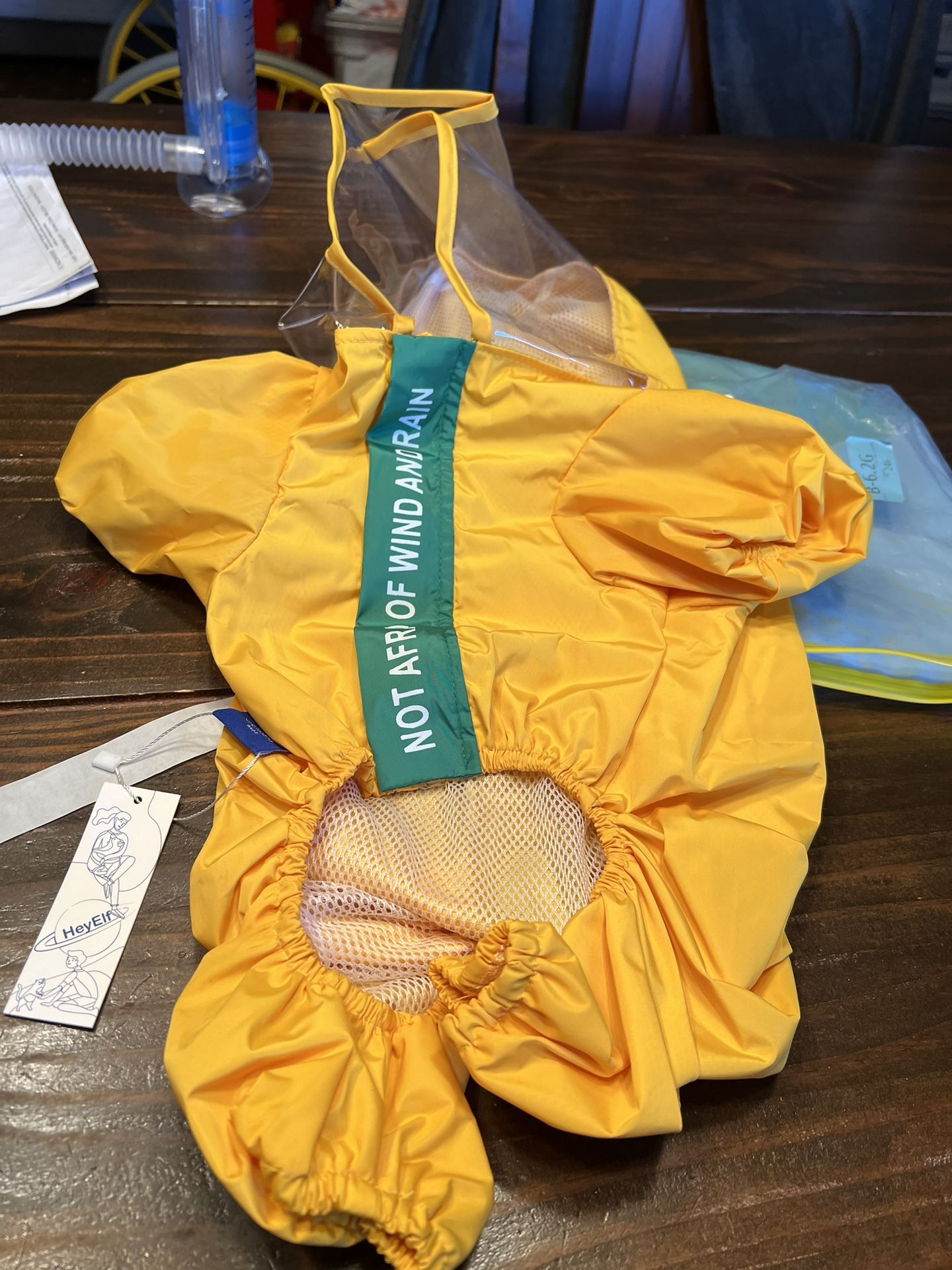 Dinosaur rain jacket with clear puppy pouch size medium paid 24.99 new with tags too small