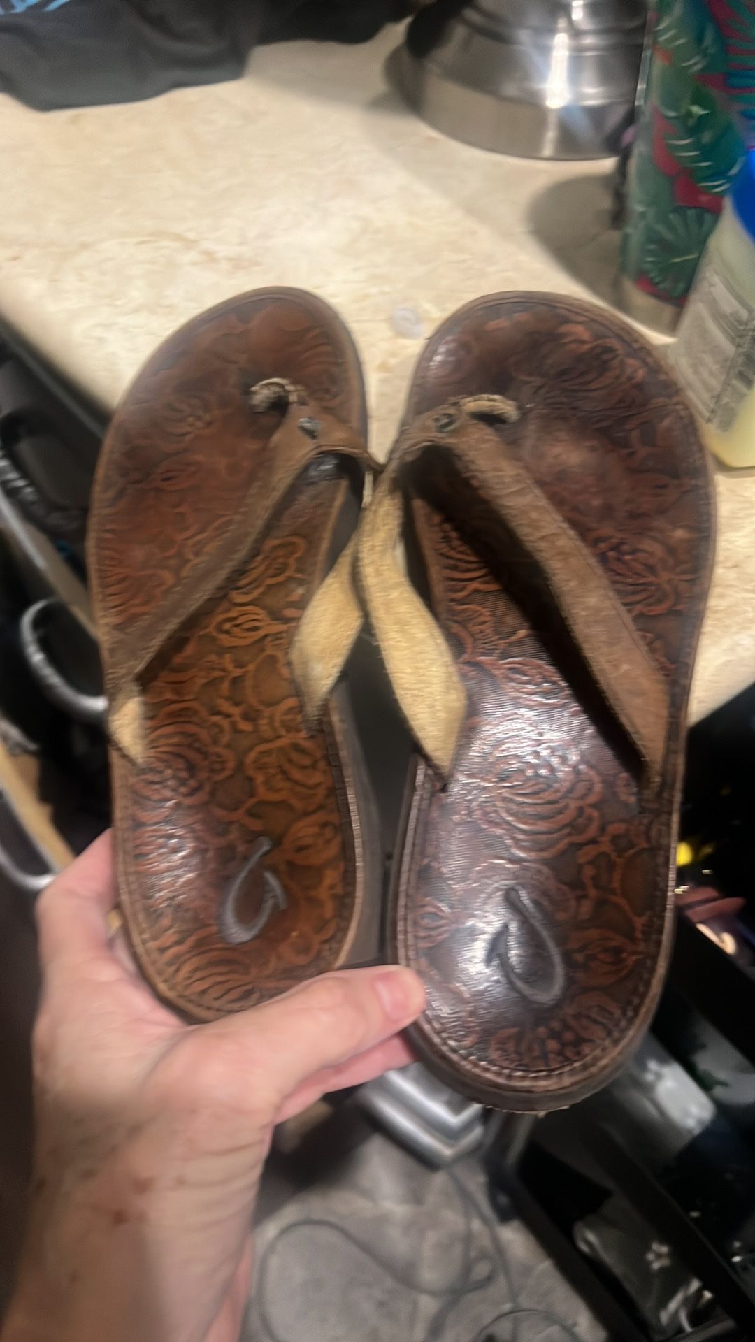 Olukai Brown Leather Flip Flop Sandals Women's Size 8