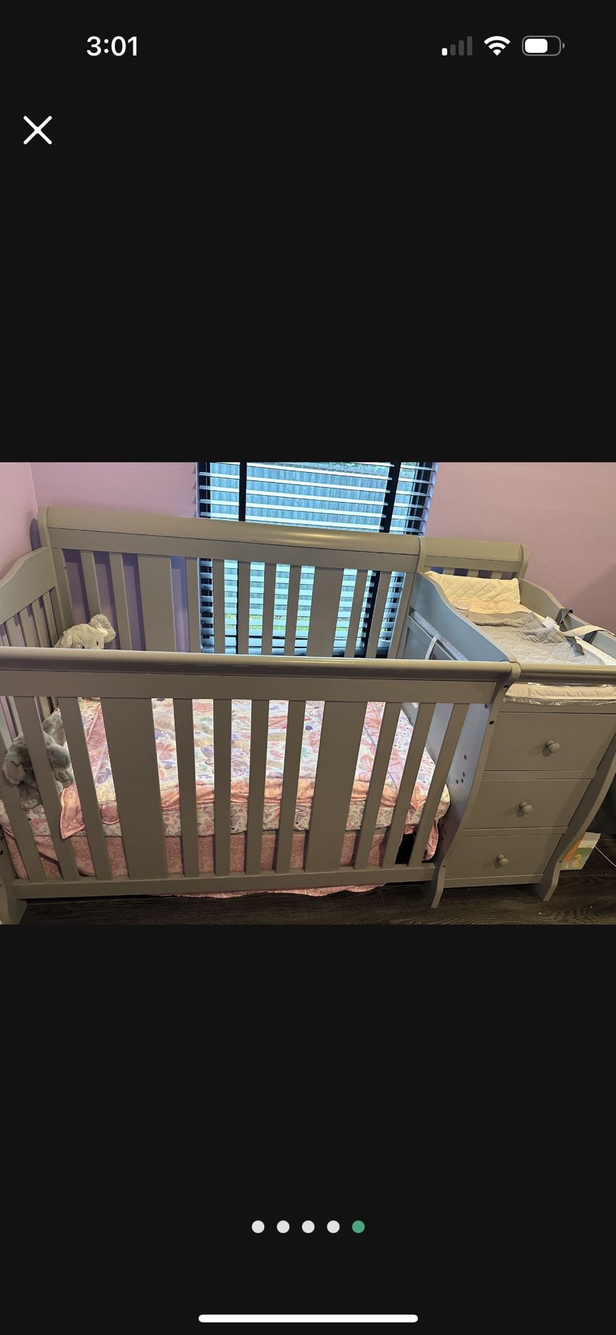 Storkcraft Portofino 5-in-1 Convertible Crib and Changer Combo (Pebble Gray) – Changing-Table with Storage Drawer, Converts to Toddler Full-Size Bed, Daybed