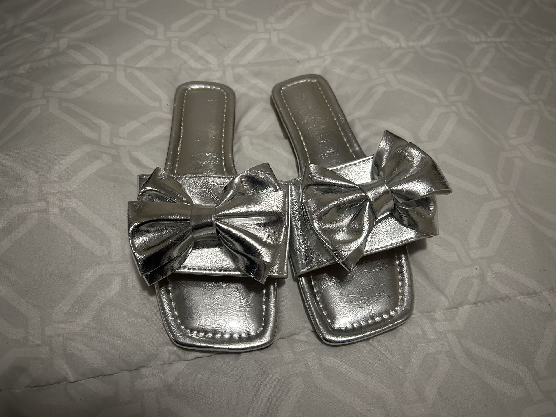 Flat All silver slip-in bow Sandals Size 8 Brand new