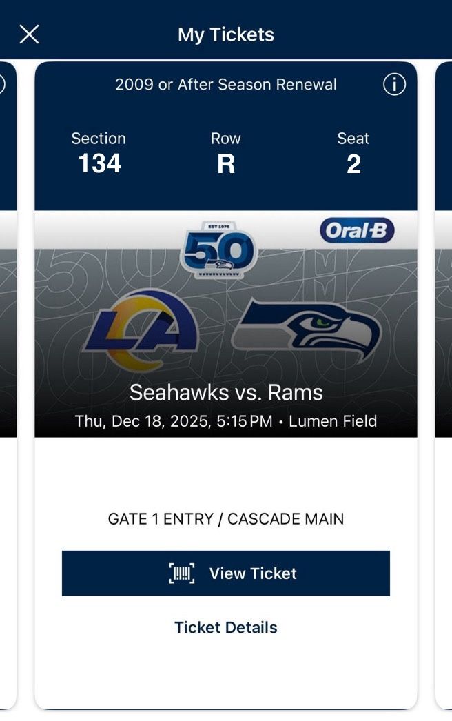 Seahawks Vs Los Angeles Rams - Thu Dec 18