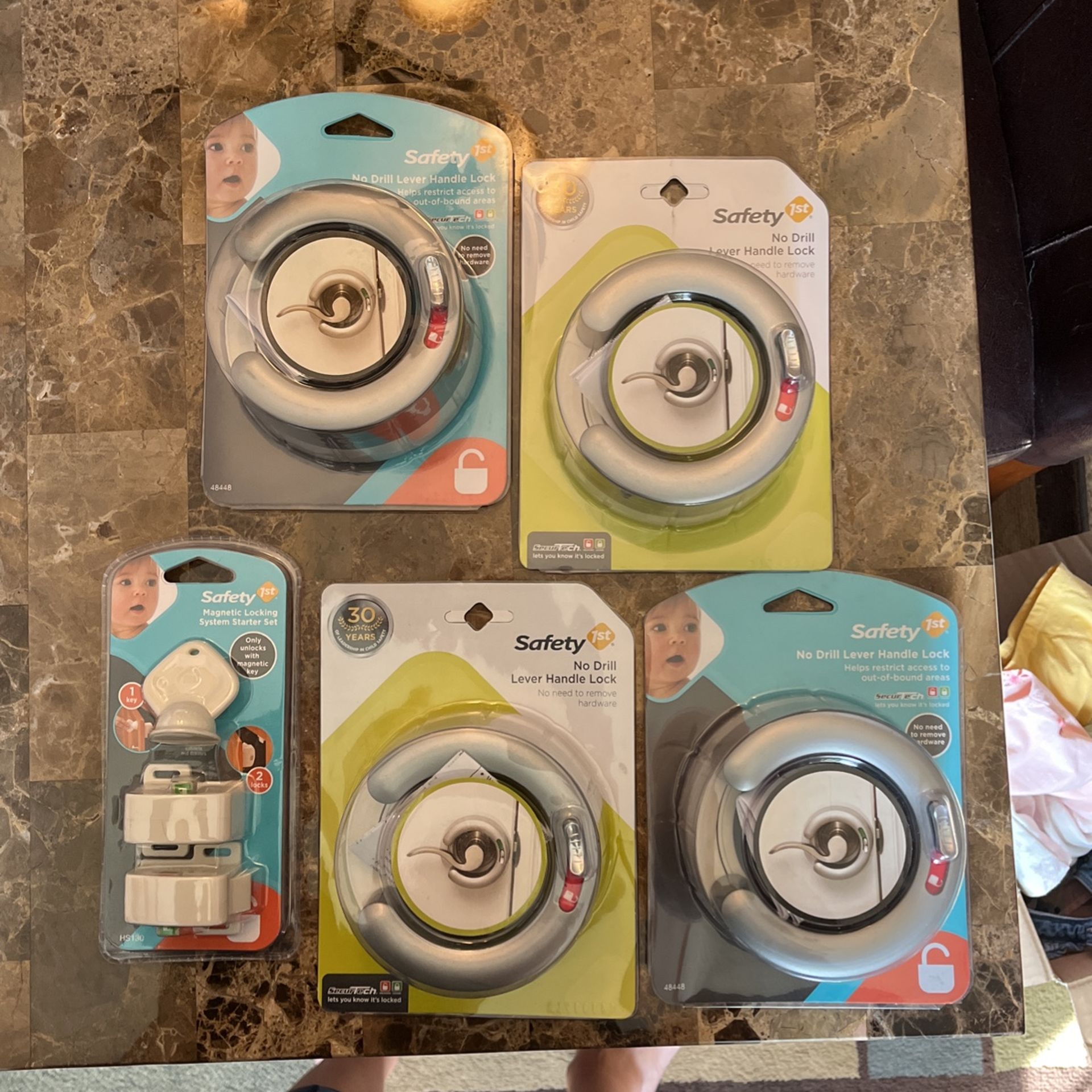 4 no drill lever handle lock. 1 magnetic locking set. New.