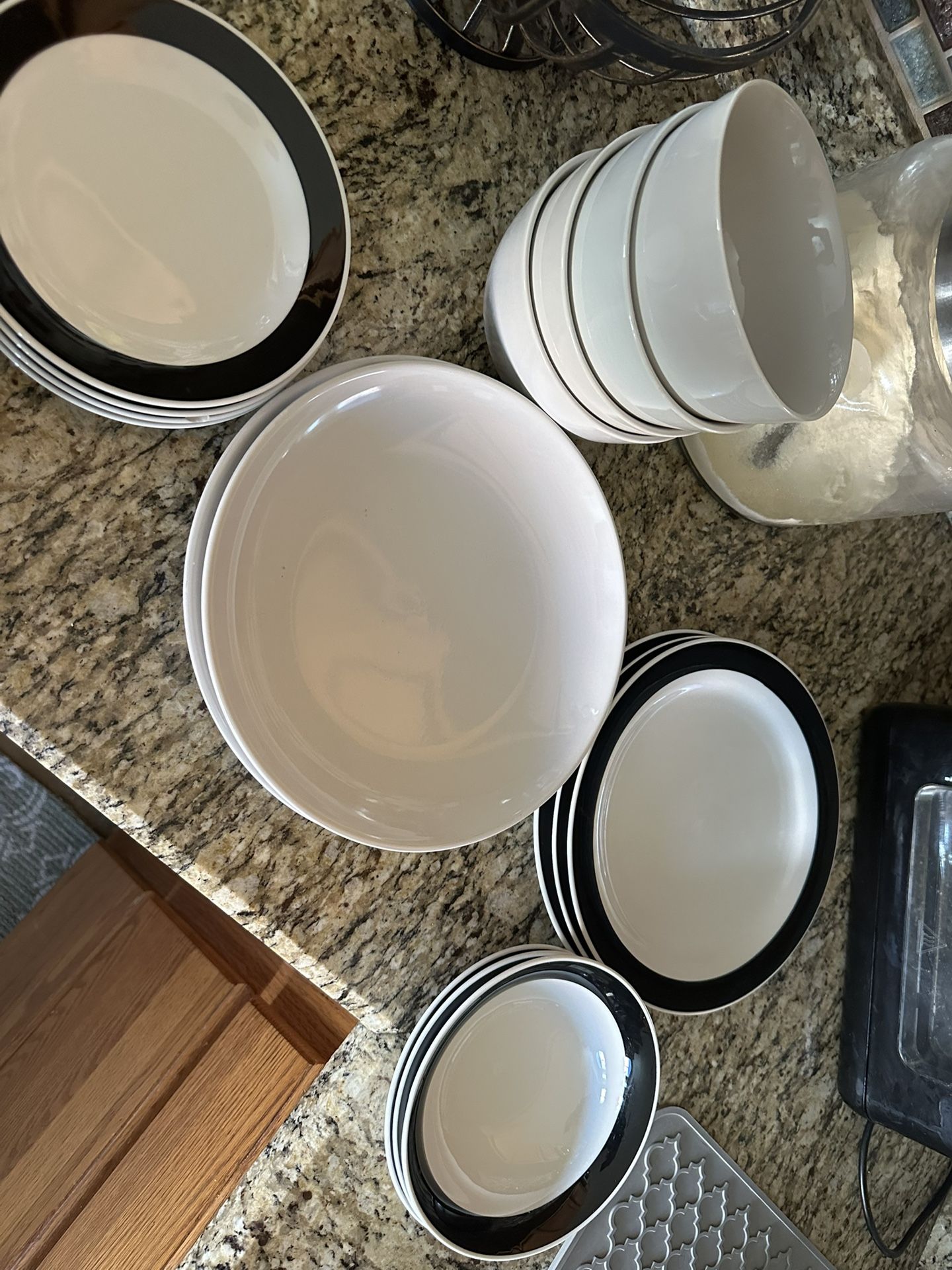 I have 8 bowls 4 is one set matching other 4 is another set 4 8” plates 3 10” plates (white & black) 2 10” plates (grey)