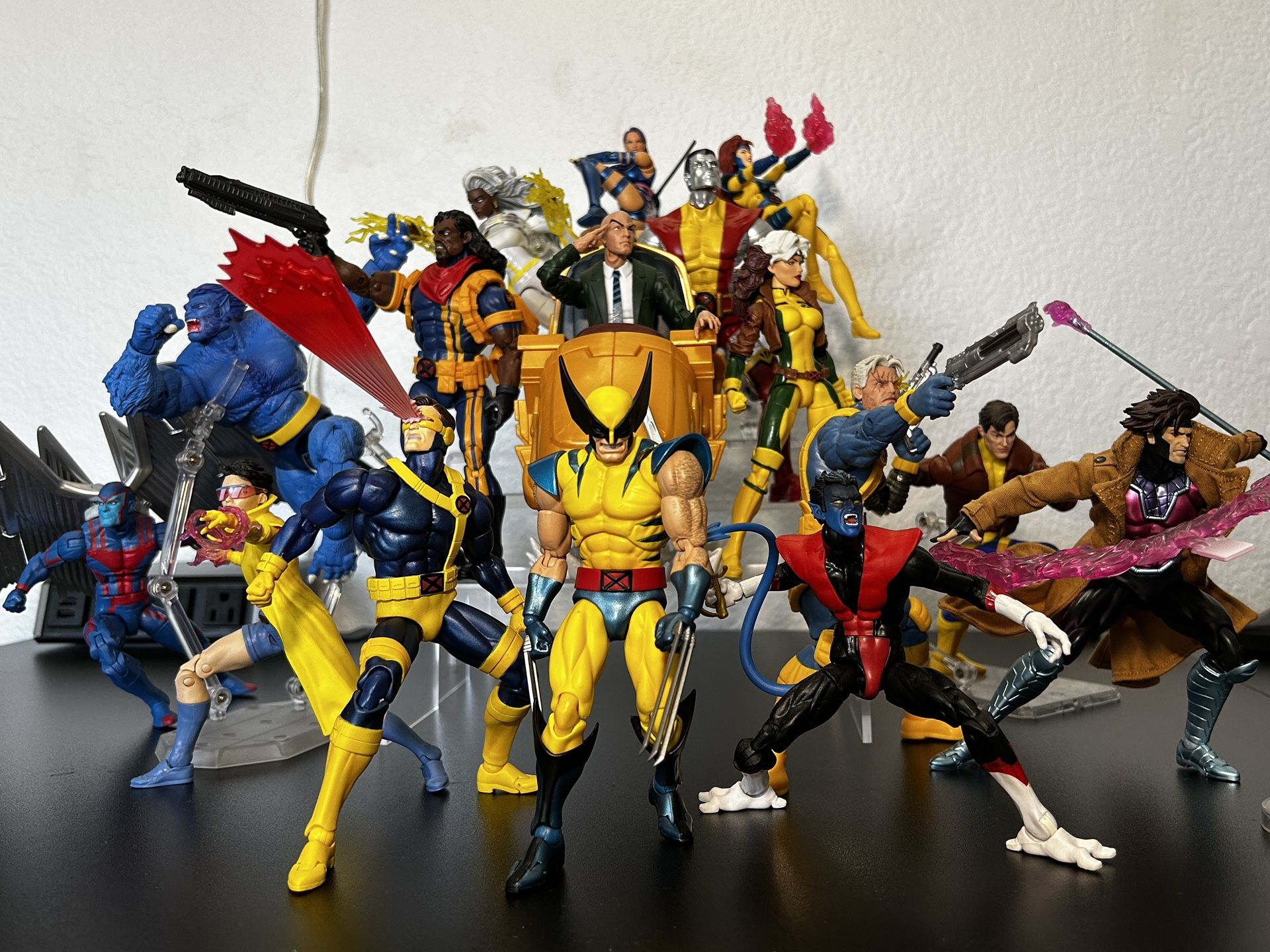Lot consists of Marvel Legends and Mafex. Marvel Legends Archangel Marvel Legends Jubilee Marvel Legends Beast Marvel Legends Bishop Marvel Legends Cable Marvel Legends Storm Marvel Legends Colossus Marvel Legends Rogue Marvel Legends Prof X Marvel Legends Nightcrawler Marvel Legends Morph Marvel Legends Iceman (Not shown in photo. Still in package) Mafex Cyclops Mafex Wolverine Mafex Gambit Mafex Psylocke Mafex Jean Comes with original accessories. Mafex figures come with original boxes. Iceman not shown in photo. Still in package. Will throw in X-Men light sign for free. Only selling complete lot. No singles. $950