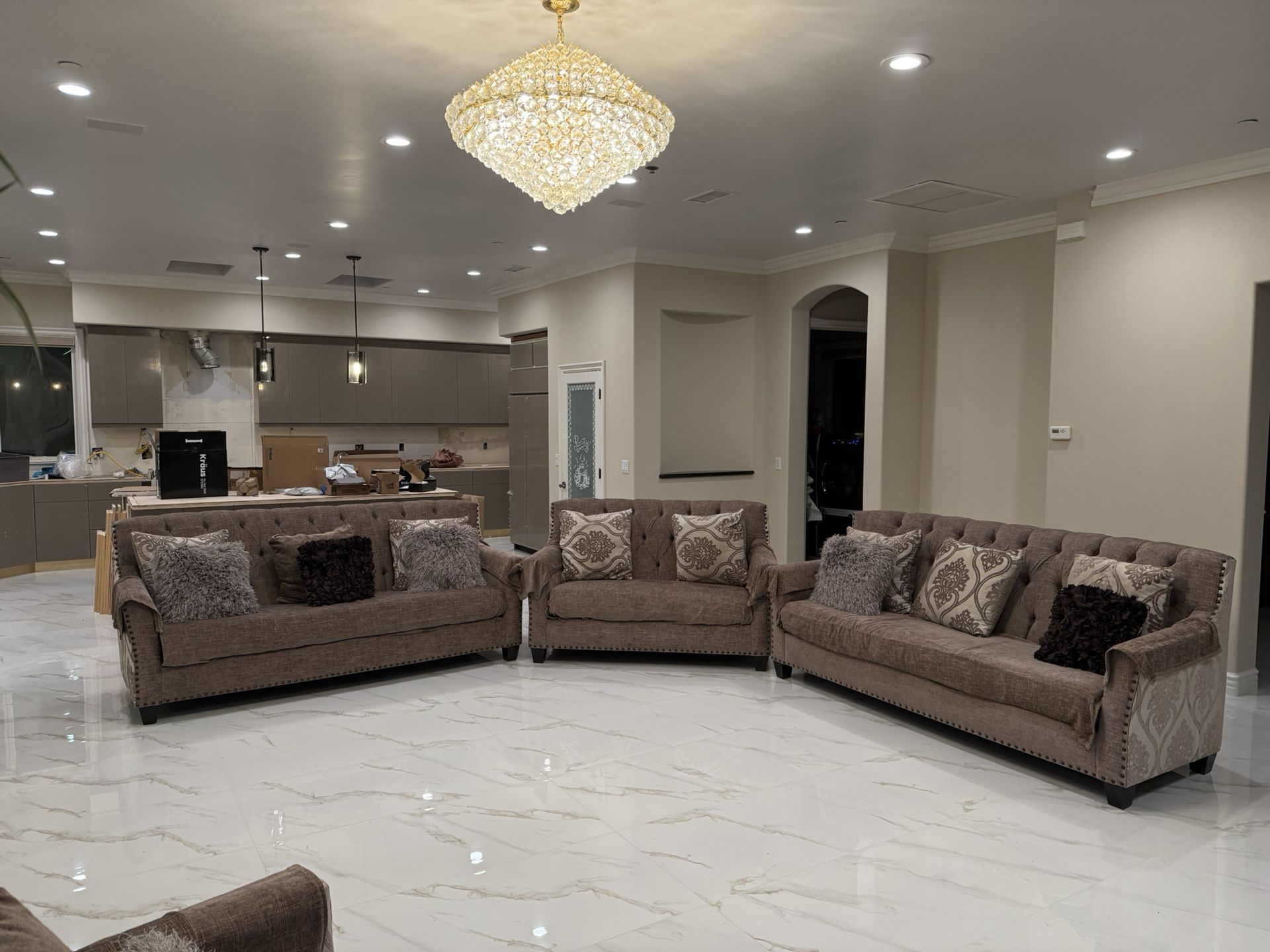 Includes 2 big Sofas, 1 loveseat and 1 chair. Also includes matching fabric cover for all pieces. Immaculate condition like new