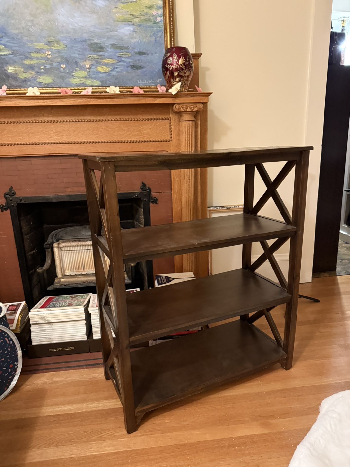 wooden shelf some small scratches and tiny bit of paint 32in wide 15in deep 39in height
