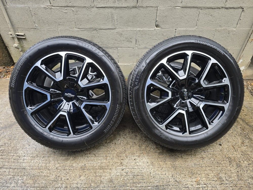 22" GM Factory Wheels 275/50R22 Bridgestone ( 5Miles) 6x139/6x5.5 Fits Chevy Silverado 1500, Tahoe, Suburban, GMC Sierra, Yukon, Yukon XL, Sierra Denali 1500, and Cadillac Escalade