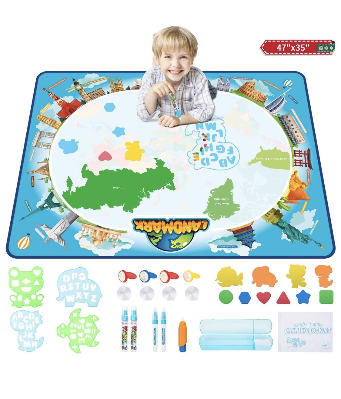 Brand new! Aqua Magic Mat, 47 x 35 Inches Colorful Drawing Doodle Board, Water Doodle Magic Mat for Kids with 28 Accessories, Toddler Educational Toys for 2-8 Year Old Girls Boys