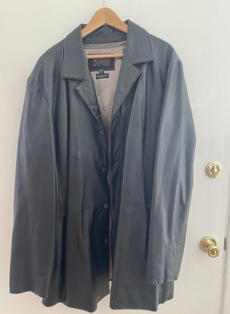 Authentic/real leather jacket in a mens tall 2XL. it is from the late 90s early 2000s and is in great condition for the age. There a couple scuffs pictured but otherwise has been well cared for. It has a removable insulation pictured. I am a women’s 2x and it is a bit too big to even wear over sized I feel it might be best for a women’s 3x and up or a mens 2x-3x. I am happy to answer any questions or provide any measurements!