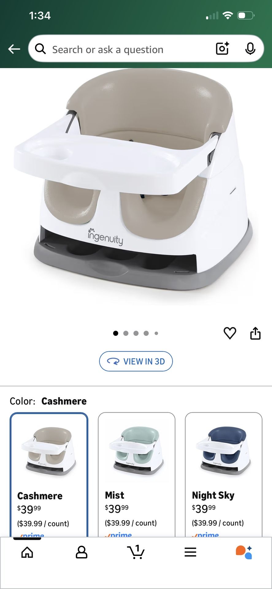 Ingenuity Baby Base 2-in-1 Booster Feeding and Floor Seat with Self-Storing Tray - Cashmere