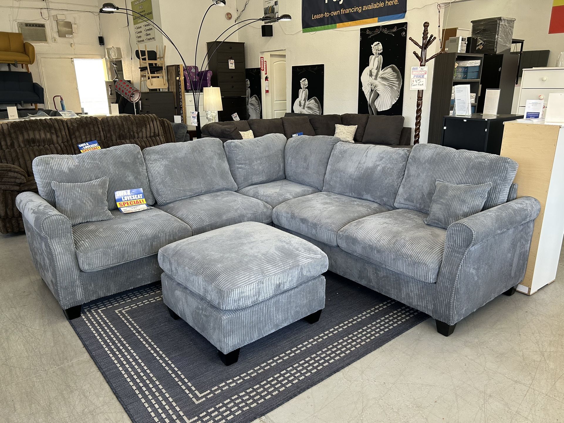 Sectional Sofa In Corduroy Fabric