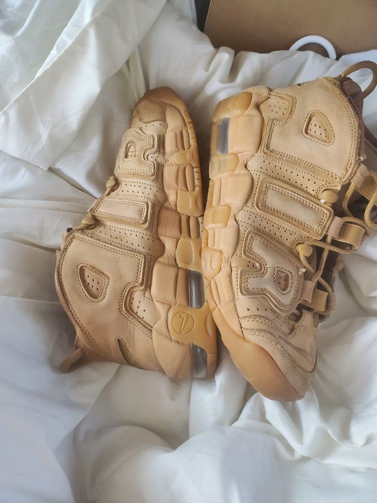 Nike Air More Uptempo Flax GS. Size 7Y or 8ish women's. EUC and will meet at agreed upon location.