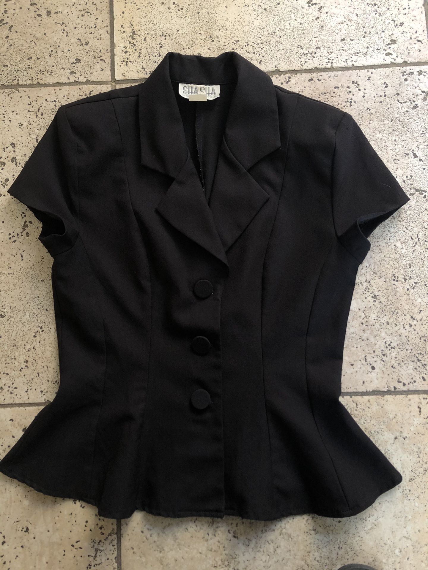 Light shoulder pads, cover buttons and narrows at the waist and flares out like a peplum at the hem. Has been worn but still in great condition. Check out pictures for measurements. ◼️