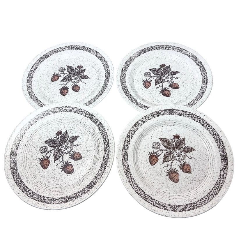 4 Vintage Homer Laughlin Strawberry Dinner 10" Plates Set Oatmeal