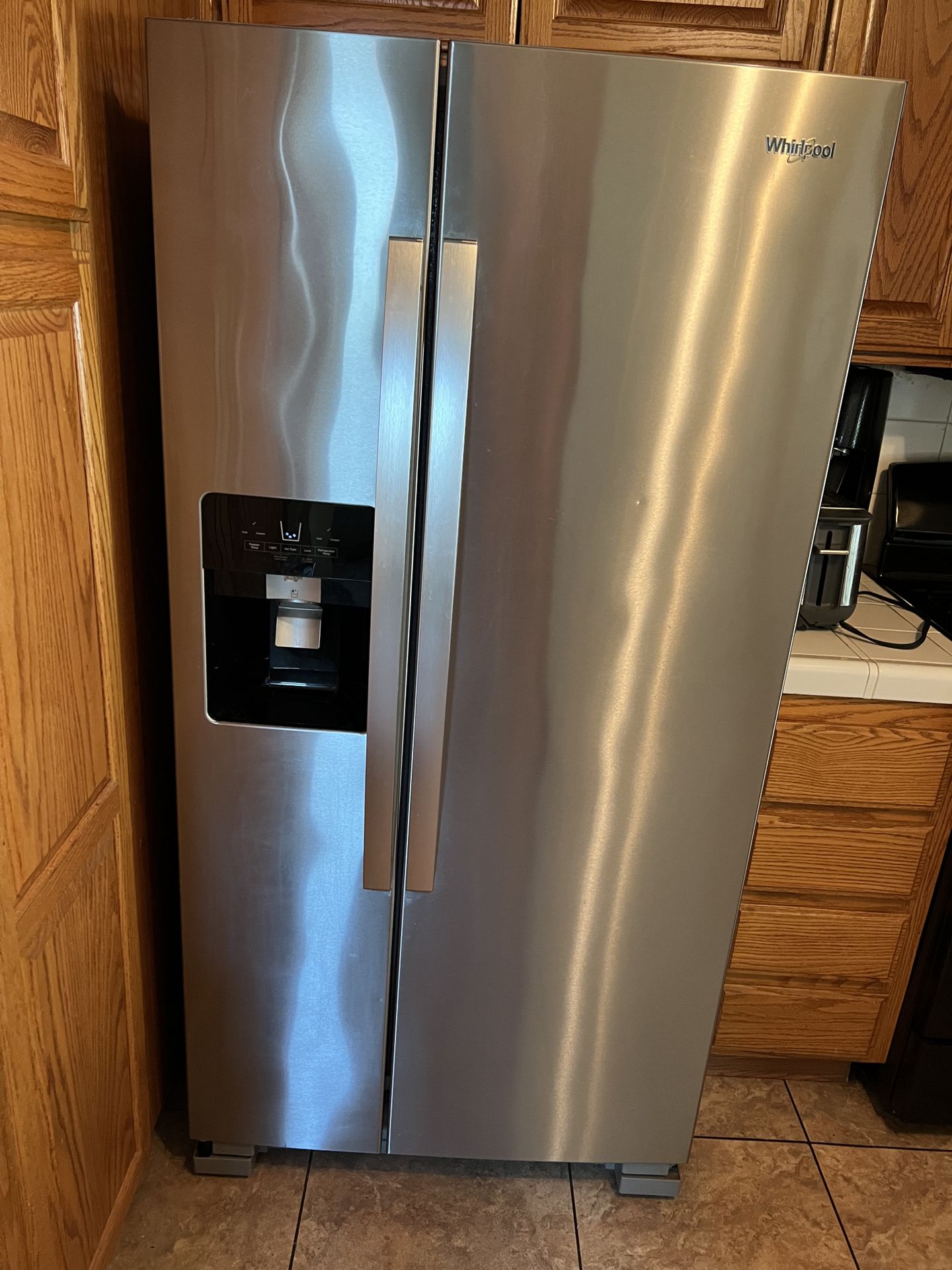 Whirlpool Stainless Steel Refrigerator with Ice and Water dispenser. 5 year filter included. Still has about 3 years of life. MOD WRS321SDHZ01 33” side by side 21.4 cu. ft In excellent condition. Used for about 2 years. Ice maker works perfectly. Retailed for over $900 Moving must sell $350 I also listed a washer and gas dryer for $225 each. Both are only 2 years old.